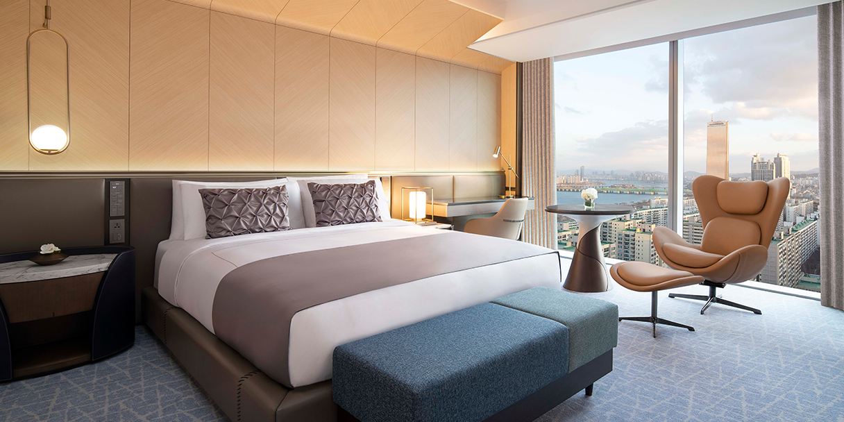 시그니처 스위트 객실은 환상적인 여의도 도심과 한강뷰를 감상할 수 있는 공간입니다. 고급스러운 객실 및 편안한 거실, 넓은 욕실로 구성되어 있습니다. 페어몬트 만의 특별한 서비스를 누릴 수 있는 골드 라운지 이용이 포함됩니다.