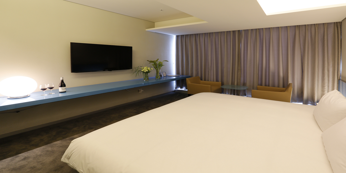 침실 유무선인터넷, 모닝콜, LCD 스크린, 리모콘 TV, 개인 금고, 멀티어답터, 스탠드, 업무용 책상, 침대, 음성메일, 가습기, 다리미, 냉 난방 시설, 개폐 가능한 창문, 전화