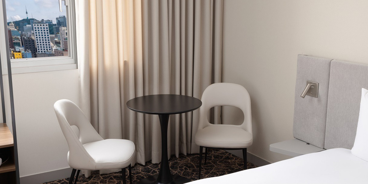 여행객과 비즈니스맨의 피로를 풀 수 있는 편안하고 아늑한 공간으로 객실에서 바라보는 익선동 한옥과 남산 전망이 고객의 마음을 더욱 풍성하고 여유롭게 만들어 드립니다.