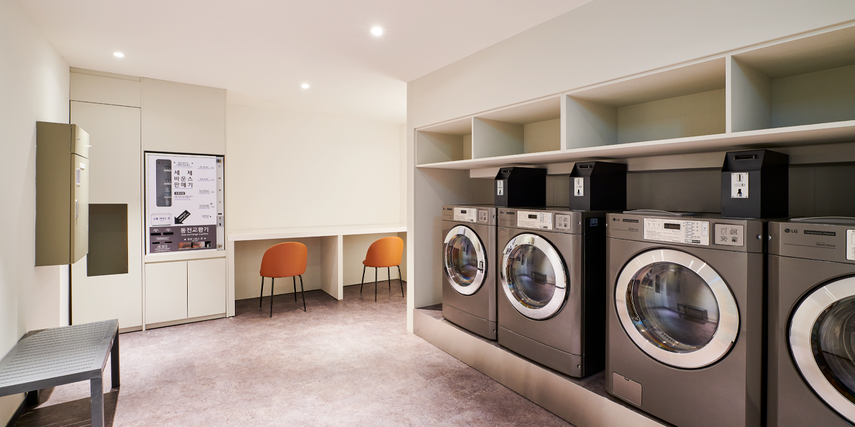 쾌적한 여행을 완성시켜 줄 셀프 코인 세탁실은 B1에 위치하고 있으며, 세탁 및 건조기 이용이 가능합니다.