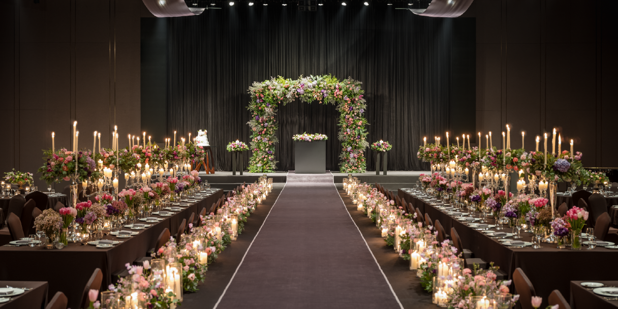 The concept of "Atelier of Art Wedding" creates the most impressive setting in colorful decorations inspired by masterpiece artworks. With classically magnificent hall designs and artistically colorful decorations, meticulously curated seasonal flowers and artworks add special elements to the ceremony. By transforming the event into a work of art, the wedding becomes the most beautiful moment to remember for life.