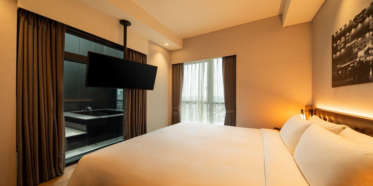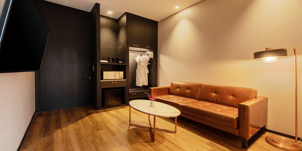 최상층에 위치한 주니어 스위트 킹 객실은 침실, 거실 및 야외 테라스가 독립적인 공간으로 구성되어 있어 친구, 연인, 가족 등 최대 2인까지 다양한 고객분들께 고품격 서비스를 제공합니다. 특히, 프라이빗 노천탕, 무료 웰컴 미니바, 네스프레소 커피 서비스 등 주니어 스위트만의 특별한 서비스를 통해 단순한 휴식 이상의 가치를 경험하세요.