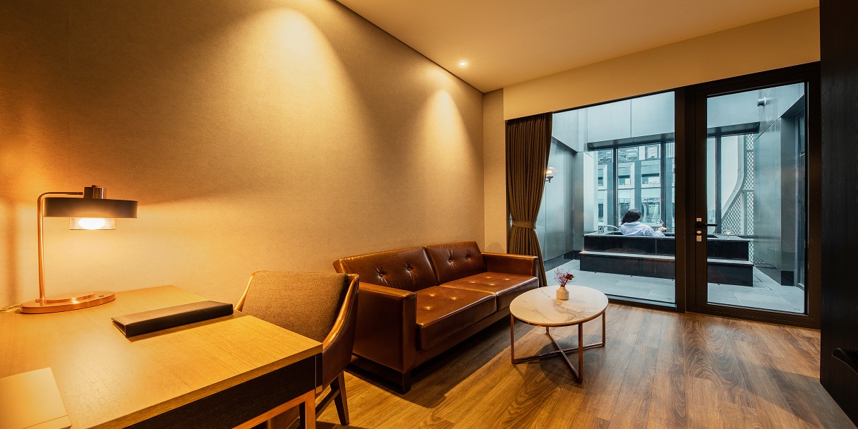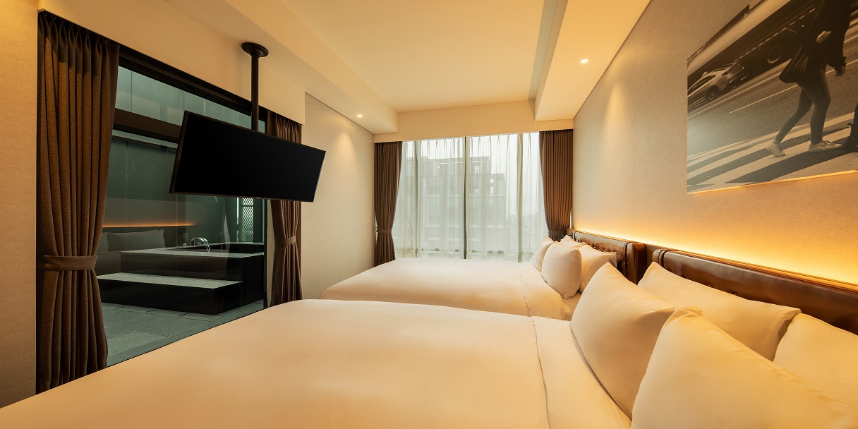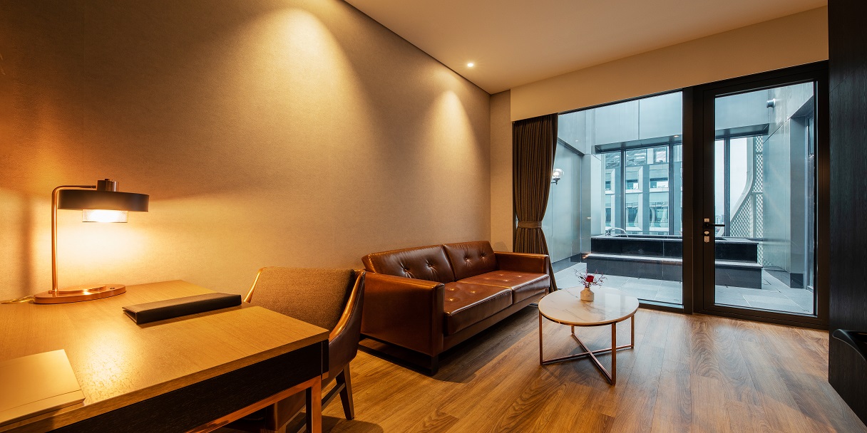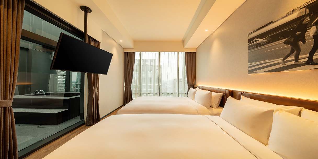최상층에 위치한 주니어 스위트 트윈 객실은 침실, 거실 및 야외 테라스가 독립적인 공간으로 구성되어 있어 친구, 연인, 가족 등 2인에서 최대 4인까지 다양한 고객분들께 고품격 서비스를 제공합니다. 특히, 프라이빗 노천탕, 무료 웰컴 미니바, 네스프레소 커피 서비스 등 주니어 스위트만의 특별한 서비스를 통해 단순한 휴식 이상의 가치를 경험하세요.