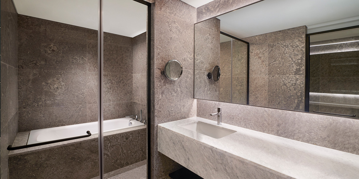 현대적인 미니멀 디자인은 인테리어의 곡선 마감으로 완성되며 자연스러운 연결, 일상의 회복을 위한 편안함 등 호텔이 추구하는 바를 강조합니다. 17층 이상의 고층에 자리 잡은 객실은 킹사이즈 침대, 욕조 및 분리된 샤워 공간이 있는 욕실, 65인치 4K UHD 스마트 TV 등을 갖추고 있습니다.