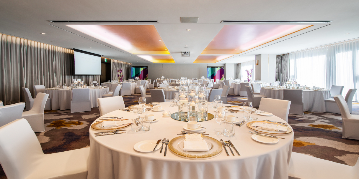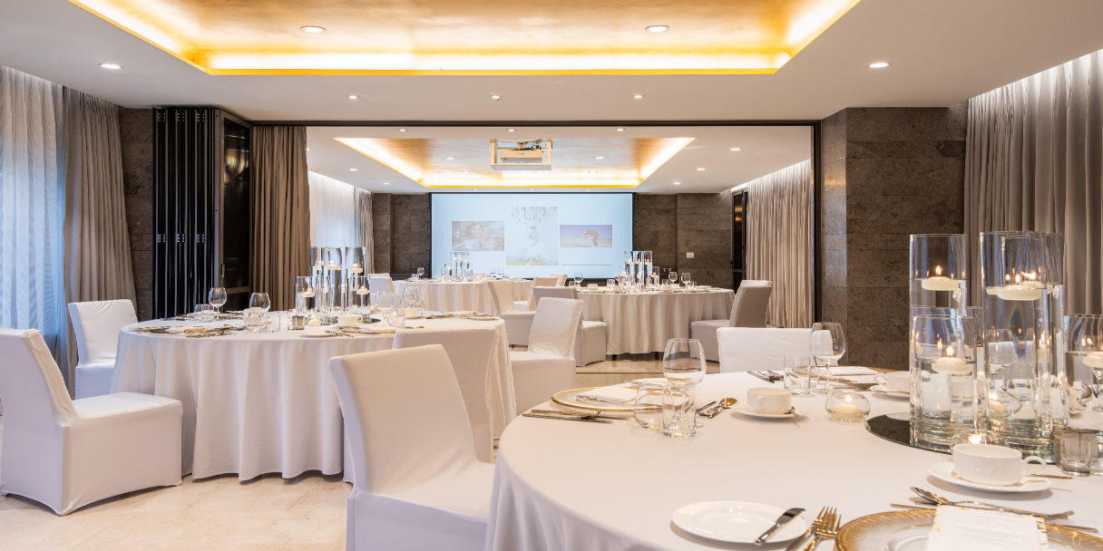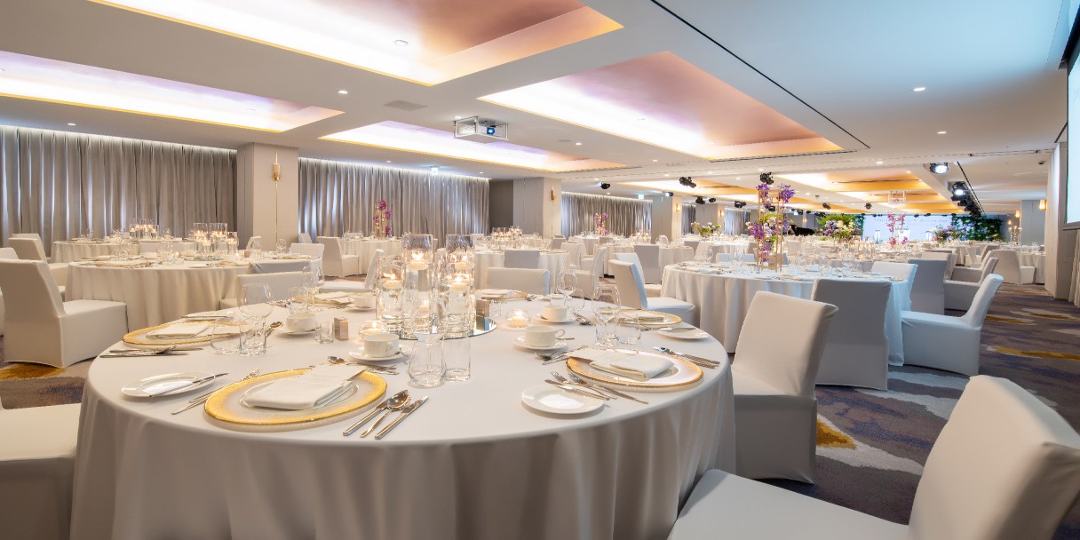3층에 위치한 그랜드 볼룸은 이벤트 및 연회에 따라 다양한 공간 연출이 가능합니다. 테이블 타입에 따라 최대 340명까지 수용 가능하며, 고해상도 265" 초대형 LCD 스크린과 최첨단 음향 시설이 설치된 연회 공간입니다. 연회 행사 종류에 따라 효율적으로 다양한 공간배치가 가능한 그랜드 볼룸은 비즈니스 모임을 위한 전문 회의 시설을 갖추고 있으며, 컨퍼런스와 브랜드 행사는 물론, 대규모 가족연 행사시에도 최상의 공간을 제공합니다.