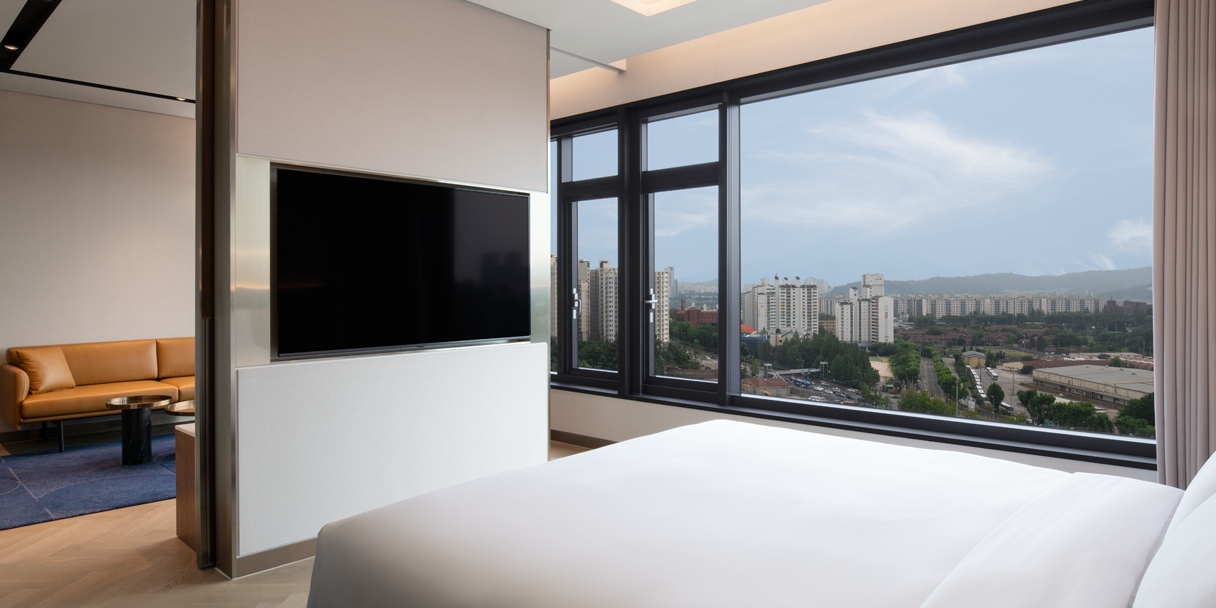 몬드리안 서울 이태원의 스위트 시티 킹 객실은 안락한 휴식을 취할 수 있도록 모든 것을 제공합니다. 넓은 창문을 통해 들어오는 자연 채광은 여유로운 스위트 시티 킹 객실을 더욱 편안하게 만들어 줍니다. 세련된 실내 장식부터, 프라이빗한 욕실에서 여유를 즐길 수 있도록 몬드리안만의 특별한 어메니티에 이르기까지, 이러한 세심한 디테일은 투숙객 여러분께 최상의 만족감을 선사할 수 있도록 설계되었습니다.