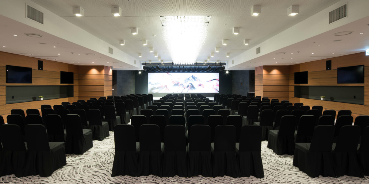 세미나 스타일로 최대 350명, 연회 스타일로 240명까지 수용 가능하며, 그랜드볼룸 라온 입구 포이어에는 여유로운 공간이 마련되어 있어 칵테일 리셉션과 커피 브레이크가 가능합니다.
