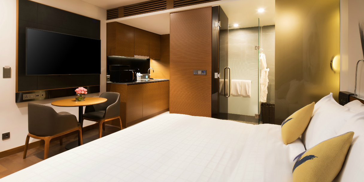 레지던스 스튜디오는 모던한 인테리어와 간이 주방, 세탁기 등 편의 시설을 갖추어 단기 또는 장기 숙박에도 편안한 공간을 제공합니다. 무료 인터넷, 피트니스 센터, 수영장 등 호텔 내 다양한 시설도 이용하며 도심 속 여유로운 휴식을 즐기실 수 있습니다.