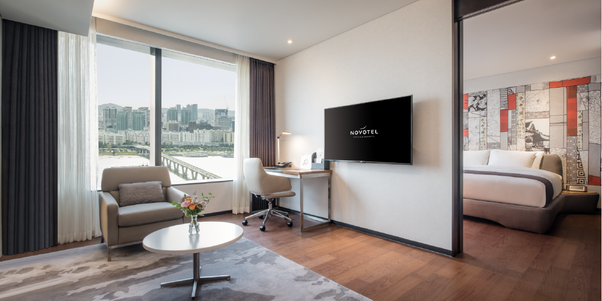 특히 호텔 40층에는 서울의 전경이 한눈에 펼쳐진 프리미어 라운지가 완비되어 있으며 성공적인 비즈니스 뿐만 아니라 편안한 휴식을 위한 다양한 서비스를 제공합니다. 편안한 출장 및 여유로운 가족 여행에 손색없는 프리미어 스위트 더블룸에서의 럭셔리한 고객 서비스를 만나보시기 바랍니다.