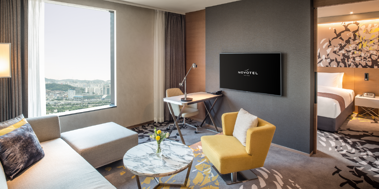 감각적인 인테리어가 인상적인 디럭스 스위트룸은 간단한 간이 주방 시설이 완비되어 있습니다. 중장기투숙객에게 최적화된 설비와 서비스가 제공되어 높은 수준의 라이프 스타일을 즐겨보실 수 있습니다. 노보텔 스위트에서 편안한 시간을 만끽하시기 바랍니다.
