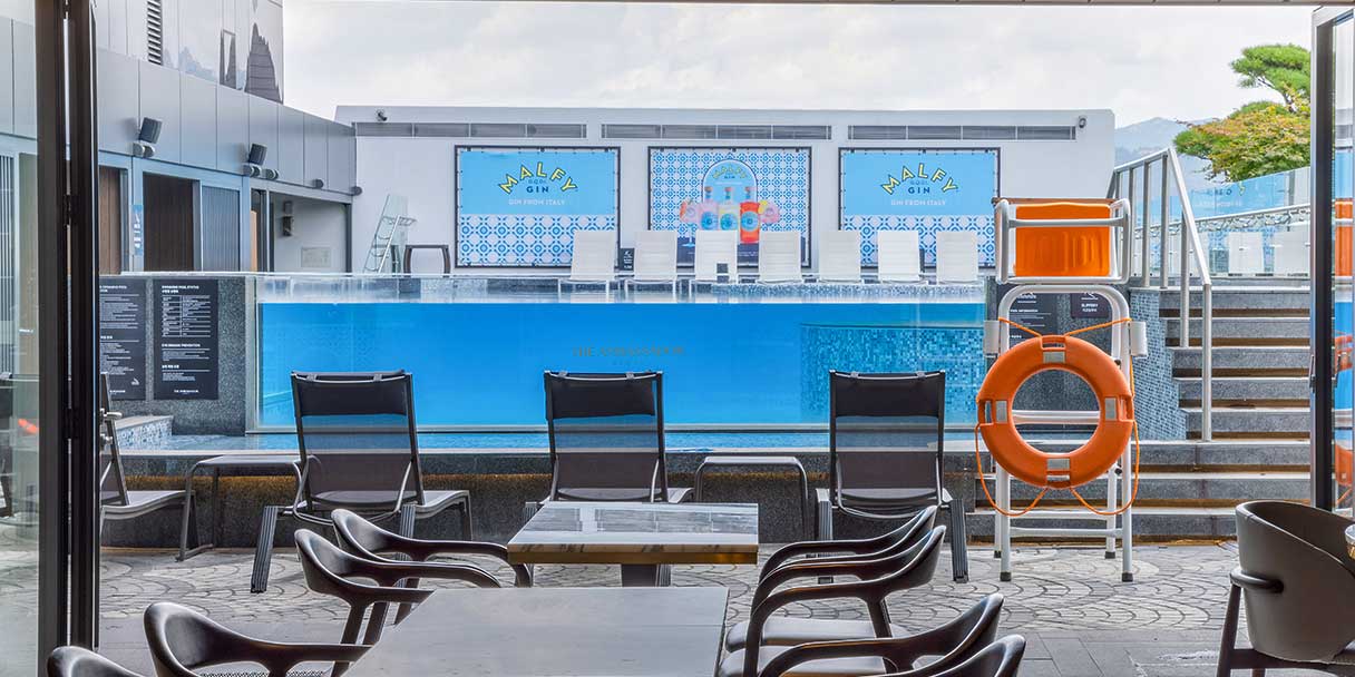 어반 이스케이프 옆에 위치한 ‘풀 하우스 테라스’는 이국적인 분위기가 매력적인 풀사이드 레스토랑 & 바입니다.