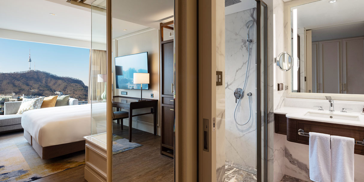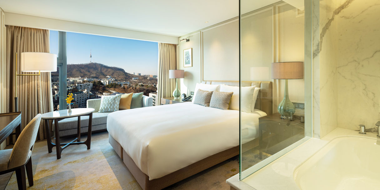 고층의 전면 유리창을 통해 보이는 아름다운 서울의 도심과 남산의 자연미를 경험할 수 있는 디럭스 객실은 품격있고 편안한 투숙 경험을 제공합니다. 각각의 디럭스 객실은 원목 가구의 따뜻함과 모던하고 럭셔리한 인테리어로 앰배서더 서울의 헤리티지와 안락함을 선사합니다.